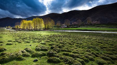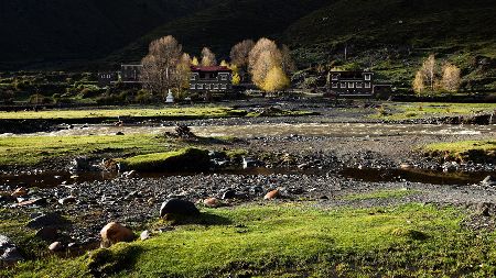 湛藍(lán)的天空下,雄鷹在盤旋,牛羊在安詳?shù)芈匠圆荩o靜的小河在山邊蜿蜒流淌,充滿綠意的白楊樹在風(fēng)中搖曳,藏式民居不時(shí)升起縷縷炊煙,寂靜、空曠的原野深處偶爾會傳來幾聲狗叫高原的陽光又賦予這幅風(fēng)景畫凝重的色彩這樣的畫面叫人心醉,讓人留戀忘返從折多山腳下至新都橋鎮(zhèn),再至塔公草原,處處都是入畫的美景,不愧稱為“攝影家的天堂”。