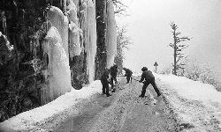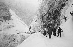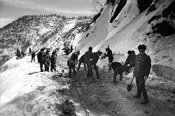 “二呀二郎山, 高呀高萬(wàn)丈, 古樹(shù)荒草遍山野, 巨石滿山崗。 康藏交通難行走, 康藏交通被它擋…… 五十年代初,《歌唱二郎山》傳遍中外,二郎山因此而聞名四海。歌詞也是昔日二郎山的真實(shí)寫(xiě)照?!?br />  一九九七年十一月二十四日,連續(xù)多日大雪,把整個(gè)二郎山裹得嚴(yán)嚴(yán)實(shí)實(shí),白茫茫一片。陣陣山風(fēng)吹過(guò),大霧就像瀑布一樣,從山頂直往下翻涌?jī)A瀉。 一大早,州交通局打冰除雪排險(xiǎn)的干部職工就從二郎山管理站直奔山埡口。載有防滑砂的大貨車穿迷霧,繞山梁,向山頂埡口疾馳。由于氣溫太低,霧又大,車上的擋風(fēng)玻璃很快就結(jié)下了冰,路面打滑非常嚴(yán)重。前面車輛堵了起來(lái),排險(xiǎn)人員只好下車步行。 大霧彌漫,能見(jiàn)度很底,陰霾的天空又飄起了紛紛揚(yáng)揚(yáng)的雪花,剌骨的寒風(fēng)陣陣襲來(lái),只聽(tīng)見(jiàn)車蓬布在風(fēng)中“嗶剝”作響,卻看不見(jiàn)前面到底堵了多少車。排險(xiǎn)人員只好相互攙扶踩著冰滑的邊路艱難地向行。好不容易來(lái)到堵在最前面的車子面前。原來(lái)是一輛載著原木的東風(fēng)牌大貨車側(cè)滑在公路上,把整個(gè)公路堵死了。 局領(lǐng)導(dǎo)當(dāng)即指揮大家用鋼釬、鐵鎬和鋤頭處理冰道,沒(méi)有撮箕,大家借來(lái)加水桶裝運(yùn)冰雪……氣溫仍在急劇下降,剛從雪堆里刨出來(lái)的路,又被結(jié)起一層冰,就像地面上澆上了油,這就是冰雪道上有名的“桐油凌”。 有二位老同志不顧年老體弱,積極參與打冰除雪,一個(gè)在打冰時(shí),被彈起的冰碴把腦門(mén)劃了一個(gè)口子,鮮血直往外冒。有人想幫他包扎,他堅(jiān)決不干,自己就用手帕按住,把帽子向下拉蓋住傷口就算了。血從手帕中浸透出來(lái),與眉毛上的冰凌結(jié)在一起。氣溫太低,冰層太厚,十字鎬每挖一下,多數(shù)情況下也就是挖下一個(gè)白點(diǎn)而已。不一會(huì)兒,另一位老同志已是滿頭大汗,大家勸他休息一下,他卻說(shuō):趁著現(xiàn)在雪不是太大,早點(diǎn)把主道上的冰雪多除點(diǎn),過(guò)往二郎山的車輛就多一份安全。 排險(xiǎn)人員的手凍紅了,刨冰雪碰傷的指頭還流著鮮血,身上蒸發(fā)的熱氣,把衣領(lǐng)口、袖子口和褲子口結(jié)成了冰,可是,誰(shuí)也沒(méi)有吭一聲。 ……受堵車輛終于向前開(kāi)動(dòng)了。 風(fēng),越刮越猛,雪,越來(lái)越大。 防滑車在冰雪道上艱難地向前爬行著,車箱上面的職工們揮舞的洋鏟向路面撒著防滑砂。一路上風(fēng)絞雪,防滑車象一頭不聽(tīng)使喚的牛,顛簸、亂竄,好不容易才來(lái)到260(二郎山最險(xiǎn)處),對(duì)這里“桐油凌”路面進(jìn)行重點(diǎn)防滑處理后,防滑車又返回來(lái),開(kāi)始向山頂進(jìn)發(fā)……風(fēng)雪二郎山上打冰除雪、防滑排險(xiǎn),看似沒(méi)有驚天動(dòng)地的壯舉,身臨其景才知其艱難辛苦。難怪當(dāng)年每每經(jīng)過(guò)二郎山冰天雪地奇險(xiǎn)路段的車,都會(huì)向風(fēng)雪中屹立路邊的交通系統(tǒng)排險(xiǎn)保暢通的職工們鳴笛致敬,風(fēng)雪中的那份情彌足珍貴。 川藏線上的老司機(jī)傳下來(lái)一首傷心的順口溜:“車過(guò)二郎山,如闖鬼門(mén)關(guān),萬(wàn)幸不翻車,也要凍三天!”其險(xiǎn)峻實(shí)為罕見(jiàn),尤其是途經(jīng)二郎山260(公路公樁)處,曾被淡虎色變的人稱為“鬼招手”的險(xiǎn)路段。 1983年1月3日,有著安全行車44萬(wàn)公里記錄的一位駕駛員開(kāi)著輛嶄新的東風(fēng)牌貨車,同行還有兩名職工,夜行二郎山,在彌天大霧中神秘地“失蹤”了。十五天后,搜山的人才用望遠(yuǎn)鏡看到260公里路樁處的山崖下,有一塊汽車破篷布掛在樹(shù)枝,猶如招魂的凄厲幌幡在冷風(fēng)中招搖晃動(dòng)。鋼纜繩吊著搜山的人下到崖下400米深處的谷底。扒開(kāi)一座座雪堆,叫人汗毛倒豎:雪堆下,盡是廢大梁、爛車廂、銹車頭和支離破碎的汽車,足有一個(gè)汽車連!一輛不知埋了多久的卡車廂里牛肉已腐爛,駕駛室里坐著三具發(fā)黑的僵尸……其狀慘不忍睹!