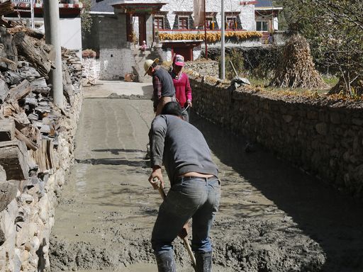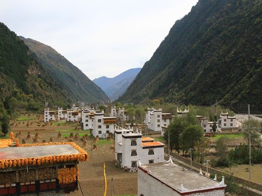 走進冬日的丹巴縣革什扎鄉(xiāng)三道橋村,一幅如詩如畫的鄉(xiāng)村美景映入眼簾:一排排新穎別致而獨具嘉絨特色的白色藏房鑲嵌在彎彎的革什扎河旁,格外耀眼。一條條平直寬敞的硬化路像一根根潔白的哈達連接家家戶戶,寬敞平坦的公路上,轎車、農(nóng)用車、拖拉機穿梭來往,別具一格的村民活動中心紅旗迎風飄揚。 這是如今的三道橋民族團結(jié)新村。