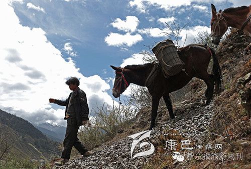 這是318和317國(guó)道都不通過的甘孜州白玉縣,從白玉縣城通往建設(shè)鄉(xiāng)德沙村的路是一條木制棧橋,2014年5月4日的中午,兩頭騾子在300斤石料的重壓下踩斷了中間的橋板,兩條前腿從踩碎的木板處懸著,騾子發(fā)出粗壯的喘息聲,無法掙扎,不能動(dòng)彈。棧橋上有路過的藏民,手中旋轉(zhuǎn)著轉(zhuǎn)經(jīng)筒,他口中念念有詞:騾子啊,你還沒有得到解脫。一群來自外地的游客都很驚詫。​ ​騾子運(yùn)輸隊(duì)的王玉海,在過往行人和同行的騾隊(duì)鄉(xiāng)親的幫助下,先卸下騾子身上背負(fù)的碎石,然后手伸到騾子前腿根處,用力抬起騾子的前身。在查看騾子沒有受傷后,王玉海把這兩只騾子牽到騾隊(duì)最后面,然后,引著另外5只負(fù)重的騾子,從橋靠左邊的雙層木板橋面上通過,騾子隊(duì)受到驚嚇,不愿意上橋,王玉海安撫了一會(huì)兒騾子隊(duì)后,在同伴的協(xié)作下,前面牽引,后面驅(qū)趕,終于,王玉海的7只騾子過橋,其他8個(gè)同伴的50多頭負(fù)重的騾子也一一通過。