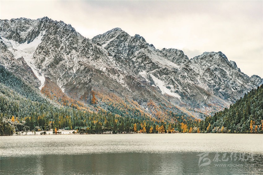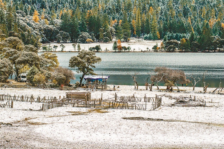 伍須海的色彩,四季都會(huì)變化,秋天最為精彩,滿湖的深綠,青黛的暗針葉林,金黃色的紅杉,火紅的槭樹(shù),褐色的高山櫟,以及點(diǎn)綴于其間的沙棘果實(shí),都五彩繽紛地點(diǎn)染著這張“畫布”。