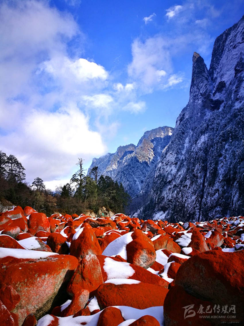 位于貢嘎山腳下綿延20多公里的紅石灘,更是與雪凇形成了強烈的視覺對比。燕子溝紅石歷經(jīng)冰川融水的沖擊,從遠處望去,愈顯鮮艷和壯麗。據(jù)燕子溝風景區(qū)工作人員介紹,紅石只能在特定的環(huán)境中生存,它對生存環(huán)境如海拔高度、溫度、濕度、空氣純凈度及日照條件等要求極為苛刻。燕子溝景區(qū)紅石灘自海拔2100米以上,一直到貢嘎山主峰腳下,綿延近20公里,好似一張紅地毯從天而降!就規(guī)模、密度以及顏色鮮艷度來說,幾乎無人能及,曾有專家稱燕子溝景區(qū)紅石灘為世界紅石公園。