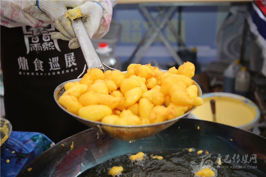要說美食節(jié)最炫酷的店鋪,那非“印度飛餅”莫屬了。記者穿過層層圍觀的人群,點了一份菠蘿飛餅。只見廚師將捏好的面團在案板上揉了幾下,便捏緊面餅一端按順時針方向轉(zhuǎn)動,手里的面餅越轉(zhuǎn)越大,越轉(zhuǎn)越薄,幾近透明,接著就是放餡料,稍做煎炸,切割裝盤,短短一分鐘內(nèi),一氣呵成。記者接過盤,咬下一口,“喀嚓”一聲,再一口就吃到了菠蘿的清香,外層淺黃松脆,內(nèi)層綿軟白皙,略帶甜味,好一個外脆內(nèi)嫩啊!嚼起來層次豐富,一軟一脆,口感對比強烈,嚼過之后,齒頰留芳。當脆餅撞上菠蘿的清香,就像在夏天突然掉進一個水池,清爽又驚喜?!案杏X就是一件的藝術(shù)品啊!”如此的驚嘆聲從人群中迸發(fā)出來。