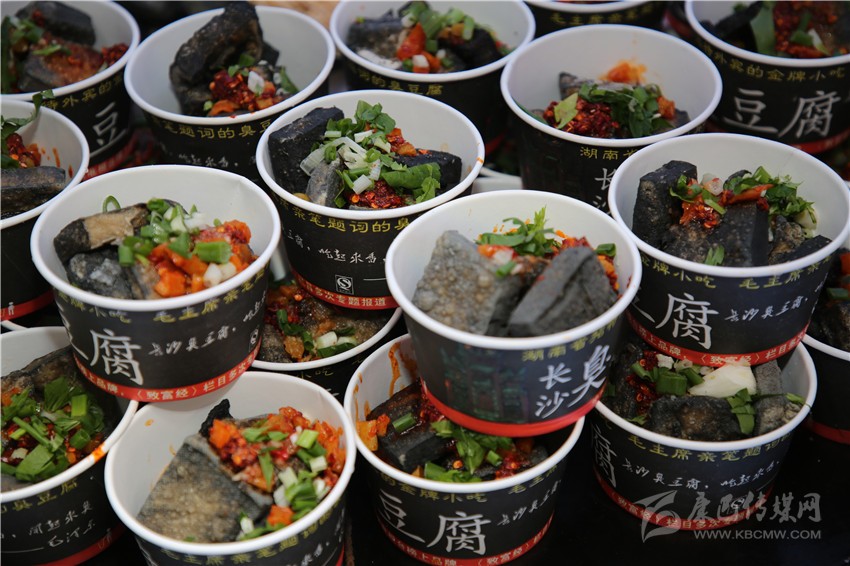 “長沙臭豆腐,毛主席親自點評的長沙臭豆腐……”一陣陣吆喝聲從遠處傳來,記者心想,臭豆腐,大概還是算長沙的味道最正宗吧。還沒走近,一陣逗人味蕾的氣味便傳進了記者的鼻子,記者的口水再也包不住了,便徑直跑向臭豆腐售賣點,一個個臭豆腐堆積如山,正在等待裝盤澆汁。周圍也圍滿了想要一嘗滋味的食客。