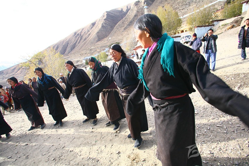 弦子又名為“協(xié)”,在甘孜縣境內(nèi)有孔薩協(xié)欽、仲薩協(xié)、格達(dá)協(xié)、郎扎協(xié)等,其中白利寺五世格達(dá)活佛創(chuàng)建于二十世紀(jì)三、四十年代的格達(dá)弦子尤為著名,跳此舞無時間規(guī)定。起初用此歌祭祀亡魂、超度靈魂、免荒災(zāi)。以后逐漸豐富其內(nèi)容而流傳于民間。表演時無伴奏樂器,起舞時,男女兩隊(duì)輪歌共舞,圍成圓圈,相對而立,男女舞者統(tǒng)一著樸素藏裝,男舞者抬頭,頭戴金氈帽, 身著“氆氌”衣,但不配戴腰刀;女舞者低頭,扎小辮子,身著“氆氌”衣,腳穿藏鞋,沿著弧線,先慢后快,邊歌邊舞,舞蹈的腳步動作矯健,帶有“夏卓”的風(fēng)韻。格達(dá)活佛的詩歌,具有藏族文學(xué)的新內(nèi)容和新思想,每當(dāng)節(jié)日人們就在優(yōu)美的旋律中盡情起舞,格達(dá)弦子的詞、曲均由格達(dá)活佛創(chuàng)作。
