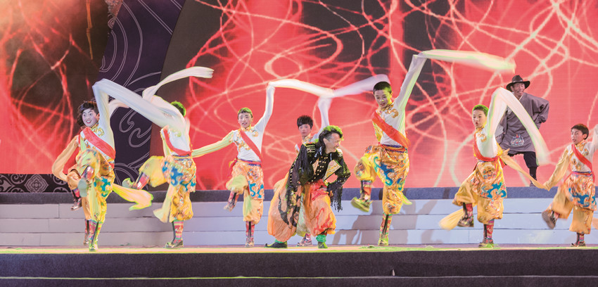 這個演出隊匯集了當(dāng)時縣上最優(yōu)秀的踢踏舞者,在那里我認(rèn)識了陳幫文、洛呷、伍伯康、貢布、絨波、俄洛啟加等,那真是一批踢踏舞的精英,每當(dāng)音樂響起,你就看他們那翻飛的腳步如流動的浪花,酣暢淋漓,激情四射。
