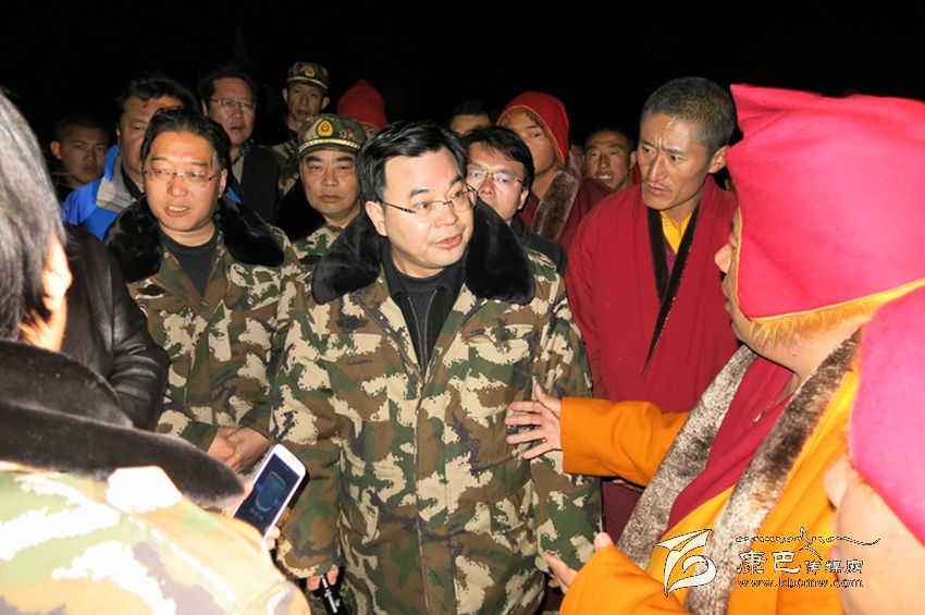 25日23時19分,康定再次發(fā)生5.8級余震,這是“11·22”地震災(zāi)害之后發(fā)生的最大一次地震,當?shù)卣鸶袕娏?。兩次地震對震區(qū)寺廟造成不同程度損壞,當前能否實現(xiàn)寺廟僧尼“五有”目標,確保溫暖過冬是胡昌升十分關(guān)心的事情。27日晚上7點,胡昌升專程來到地處此次地震震中、受損較嚴重的康定縣扎西寺查災(zāi)核災(zāi)。