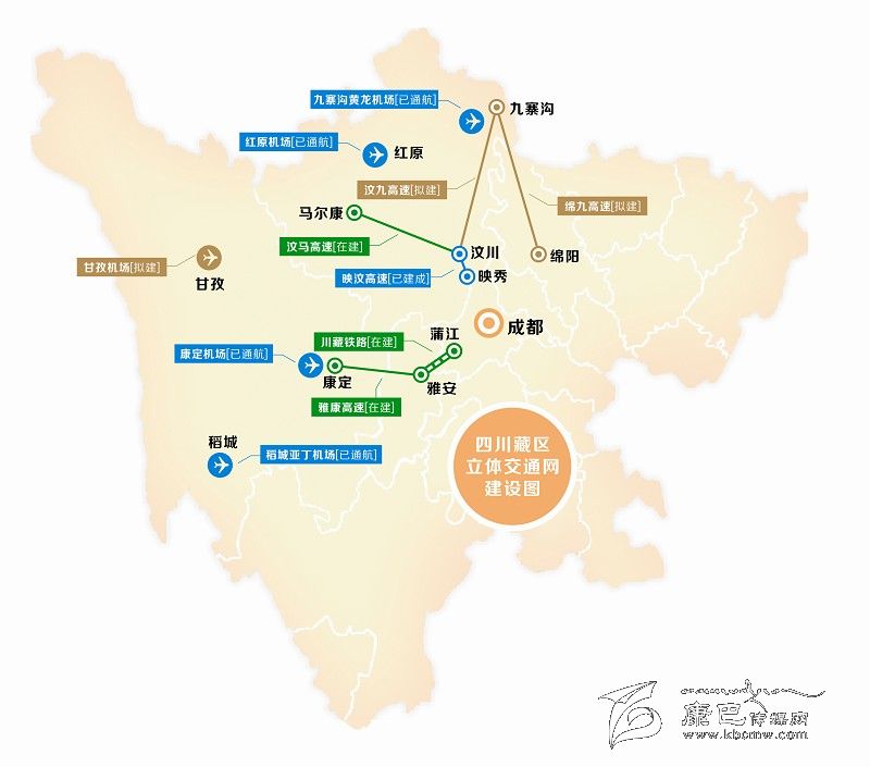 上月出臺的《四川省推進實施長江經(jīng)濟帶綜合立體交通走廊規(guī)劃工作方案》中提出,我省將加快支線機場建設,包括進一步完善位于四川藏區(qū)的紅原機場配套設施,以及將在“十三五”期間,開工建設同樣位于藏區(qū)的甘孜機場。鐵路方面也有好消息,備受關(guān)注的川藏鐵路,除了剛剛?cè)€開工的蒲江至雅安段外,還將在明年上馬建設雅安至康定(新都橋)段。