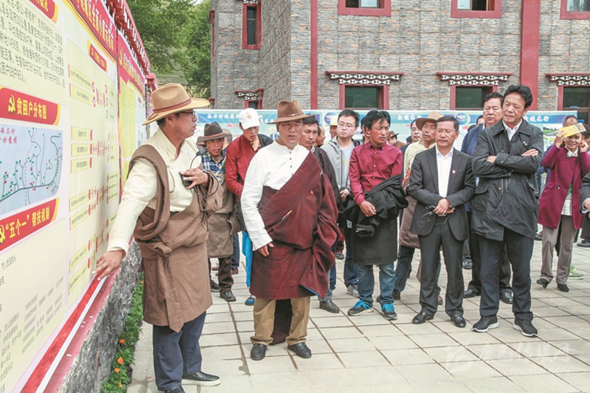圖為與會人員在康定市瓦澤鄉(xiāng)魚子西三村參觀考察。