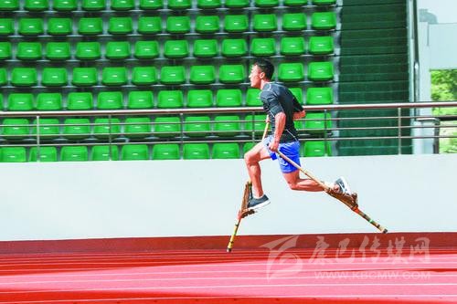 高腳競速運動是由運動員雙手各持一桿,同時腳踩桿上的腳踏蹬,在田徑場上奔跑,根據(jù)跑完同等距離用時多少定名次;其比賽形式分為單人賽、接力賽和混合接力賽,按賽程分有50米、100米、200米、400米和4×100米。