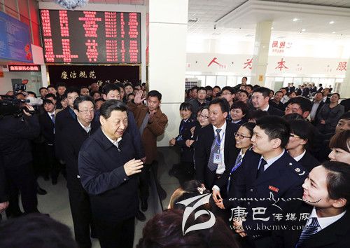 3月17日,習近平在視察縣為民服務中心辦事大廳時同現(xiàn)場群眾和工作人員交流。