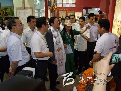 視察中,劉奇葆興致勃勃地觀看了我州文化形象展示大屏幕和非物質文化遺產展示、土特產品及民間工藝品。他來到藏文書法、藏族噶瑪嘎孜畫派、藏族藥泥面具制作技藝等非物質文化遺產項目和土特產品展品前,仔細詢問這些藝術品的生產工藝、制作流程等情況后,對我州深厚的文化底蘊和豐富的旅游資源連連稱贊,殷切希望甘孜州傳承好歷史文化,發(fā)揮好民間藝術非遺項目,走文化
