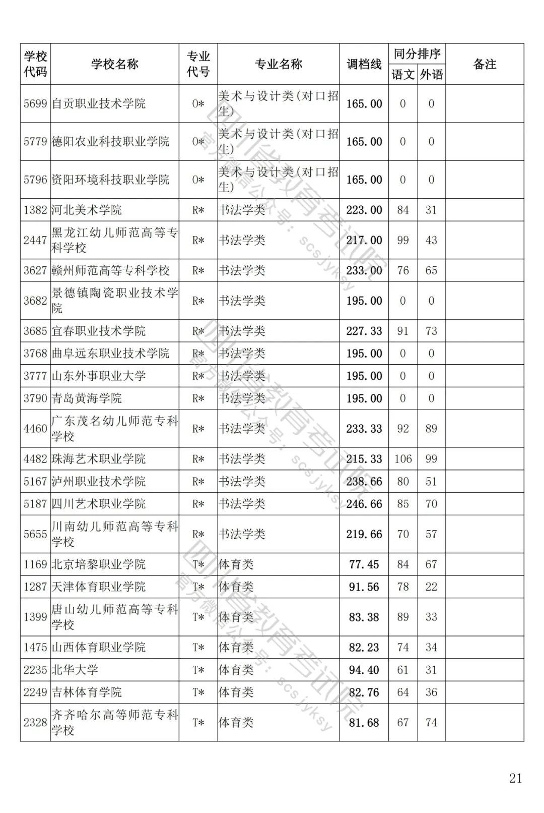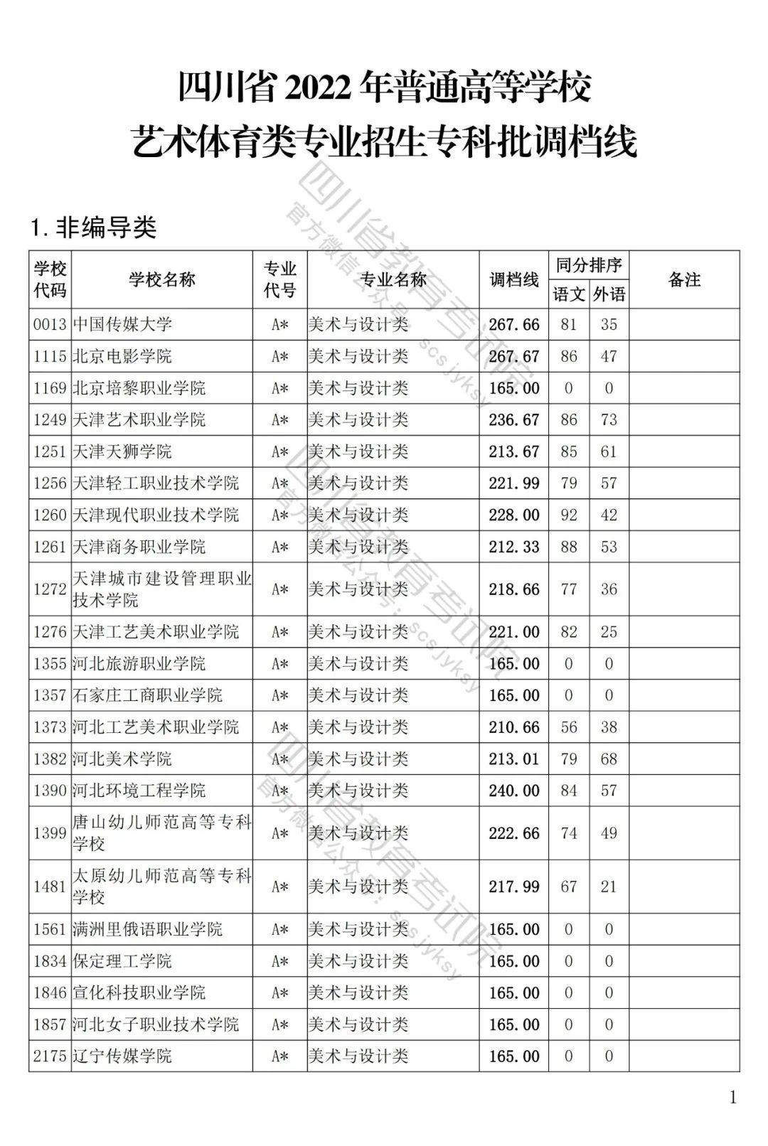 四川省2022年藝術(shù)體育類專科批調(diào)檔線出爐