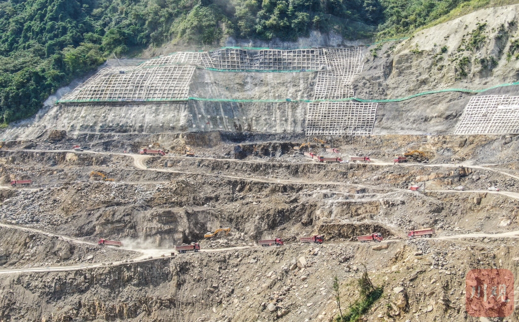 “四季度我們拿出了決戰(zhàn)的姿態(tài),加大了石料開采和運(yùn)輸強(qiáng)度。挖掘機(jī)從之前8臺(tái)增加到13臺(tái),重型卡車也保持在80輛至120輛之間,后面還將增加到150輛左右。”據(jù)張鐸介紹,天氣好的時(shí)候,料場(chǎng)還要進(jìn)行夜間施工。