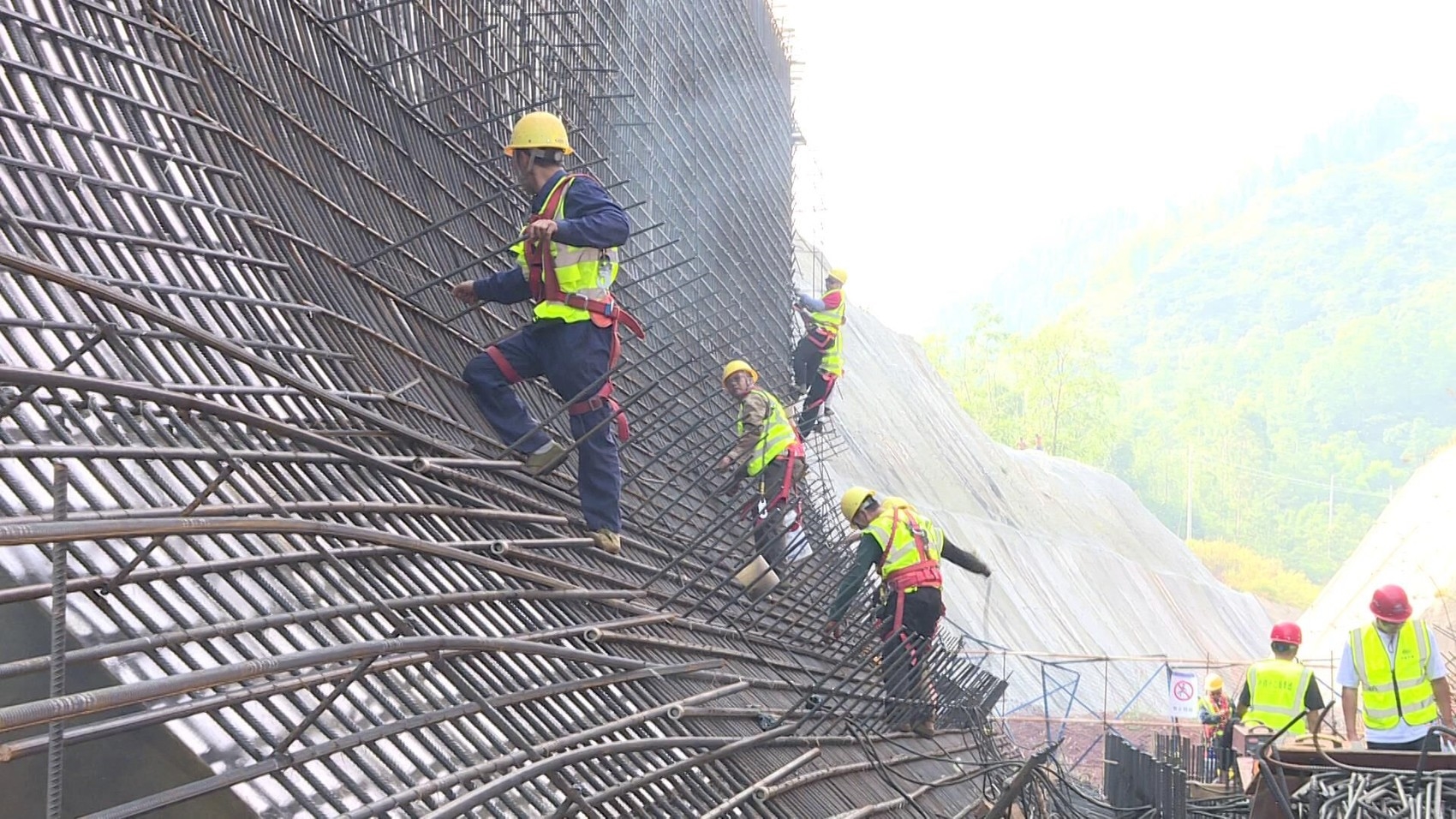 國慶節(jié)假期,在向家壩灌區(qū)北總干渠一期一步工程大地灣渡槽項(xiàng)目施工點(diǎn),工人正加緊對(duì)第一跨渡槽槽身開展鋼筋綁扎工作。