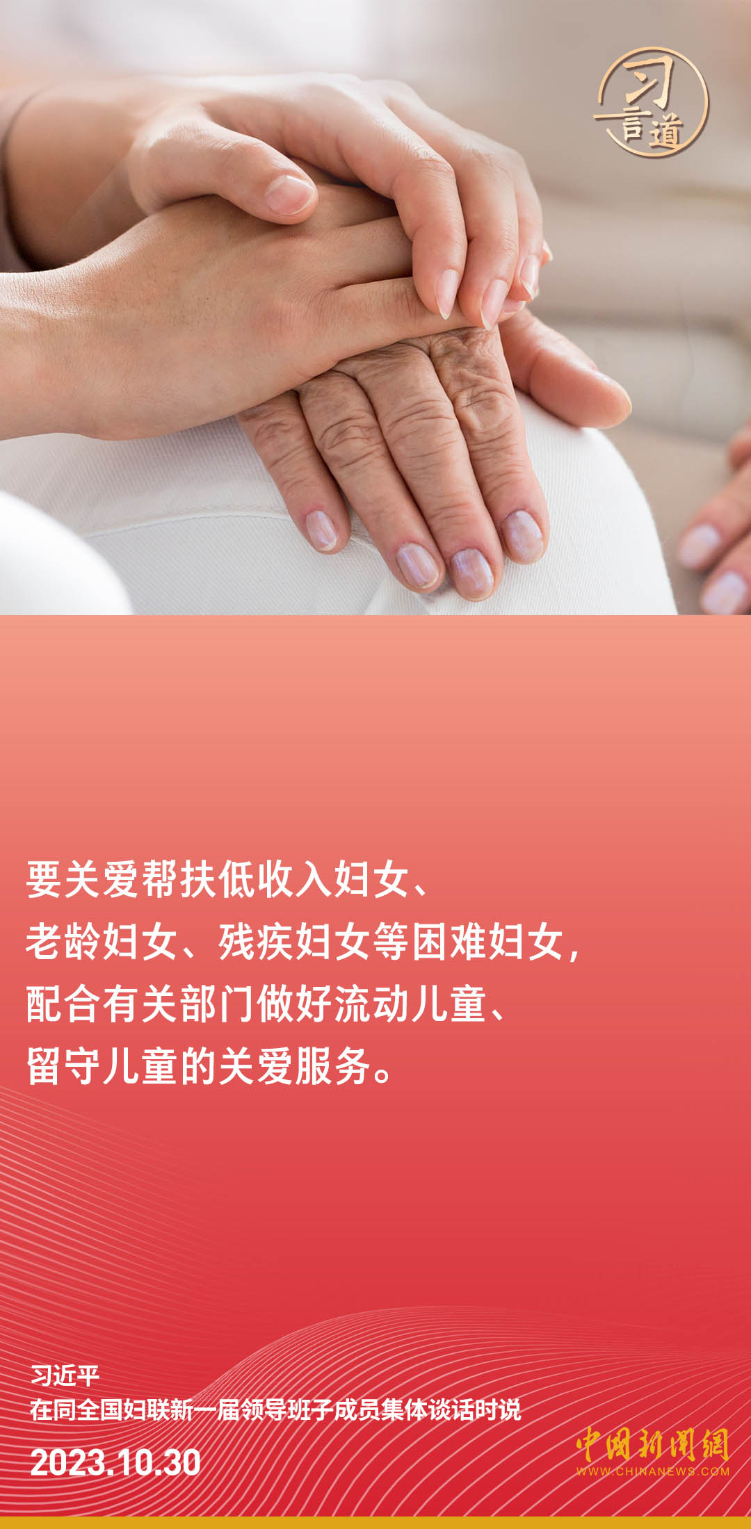 中共中央總書記、國家主席、中央軍委主席習(xí)近平30日下午在中南海同全國婦聯(lián)新一屆領(lǐng)導(dǎo)班子成員集體談話并發(fā)表重要講話。習(xí)近平強調(diào)——