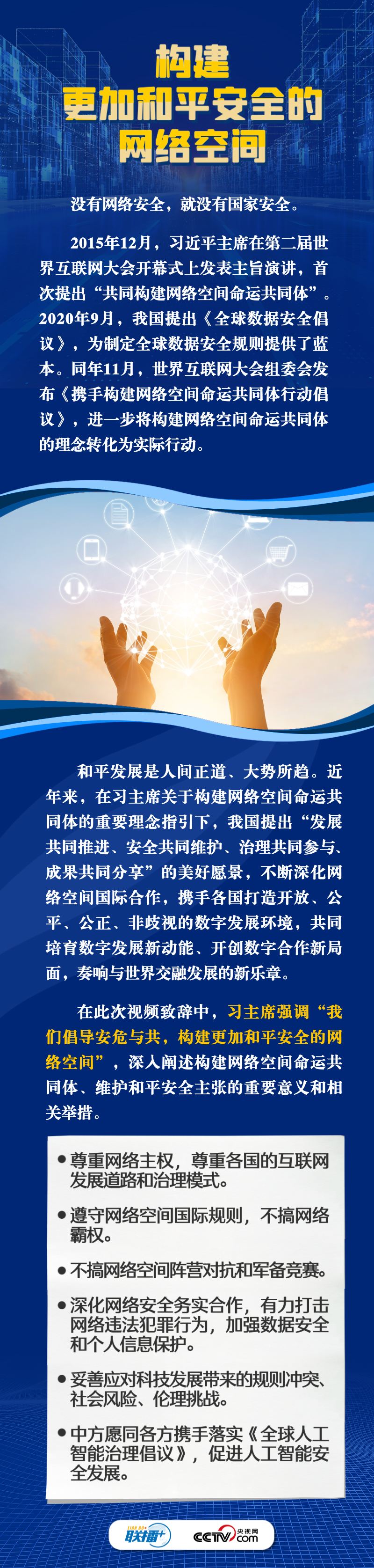 聯(lián)播+11月8日,習(xí)近平主席向2023年世界互聯(lián)網(wǎng)大會(huì)烏鎮(zhèn)峰會(huì)開(kāi)幕式發(fā)表視頻致辭。自2014年首屆世界互聯(lián)網(wǎng)大會(huì)舉辦以來(lái),習(xí)主席通過(guò)發(fā)表主旨演講、視頻致辭或者向大會(huì)發(fā)來(lái)賀信等不同形式關(guān)心大會(huì)的舉辦,始終倡導(dǎo)構(gòu)建網(wǎng)絡(luò)空間命運(yùn)共同體,得到國(guó)際社會(huì)廣泛認(rèn)同和積極響應(yīng)。