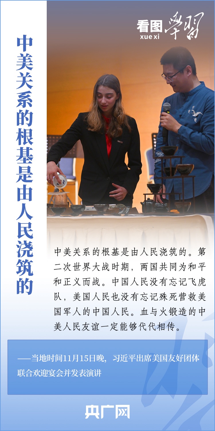 當(dāng)?shù)貢r(shí)間11月15日晚,國(guó)家主席習(xí)近平在美國(guó)舊金山出席美國(guó)友好團(tuán)體聯(lián)合舉行的歡迎宴會(huì)并發(fā)表重要演講。習(xí)近平主席在演講中系統(tǒng)闡述了關(guān)于中美關(guān)系的一系列觀點(diǎn)、立場(chǎng)、原則,強(qiáng)調(diào)“中美關(guān)系希望在人民,基礎(chǔ)在民間,未來(lái)在青年,活力在地方”,希望匯聚起兩國(guó)人民的力量,賡續(xù)中美友誼,推進(jìn)中美關(guān)系,努力為促進(jìn)世界和平和發(fā)展作出更大貢獻(xiàn)!一起來(lái)學(xué)習(xí)。