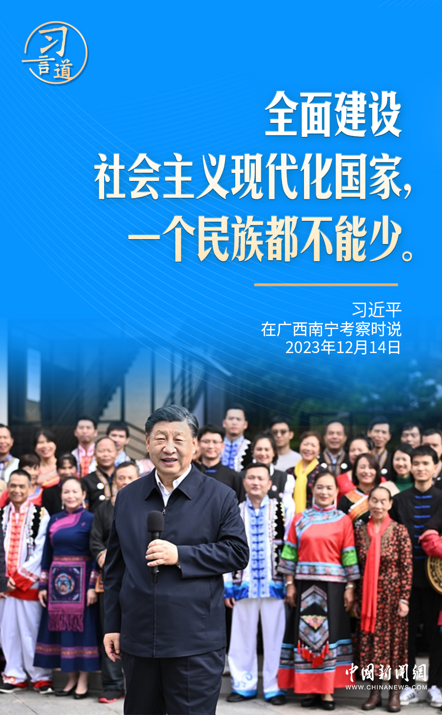 12月14日,在廣西南寧名為蟠龍社區(qū)的多民族聚居社區(qū)里,習近平再次強調(diào)了“一個民族都不能少”。