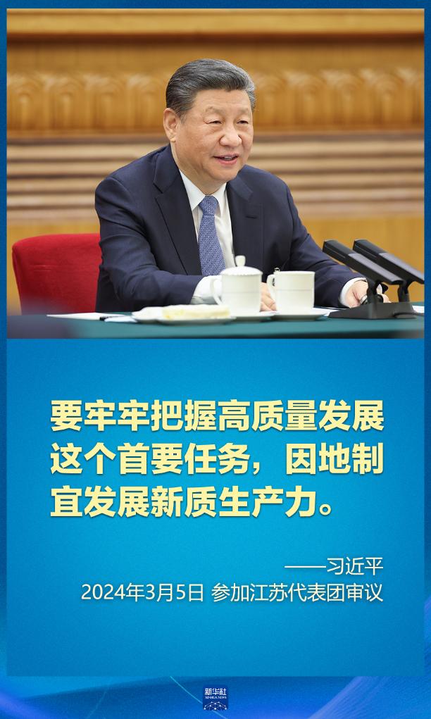 5日下午,習(xí)近平在參加他所在的十四屆全國人大二次會議江蘇代表團(tuán)審議時(shí)強(qiáng)調(diào),因地制宜發(fā)展新質(zhì)生產(chǎn)力。