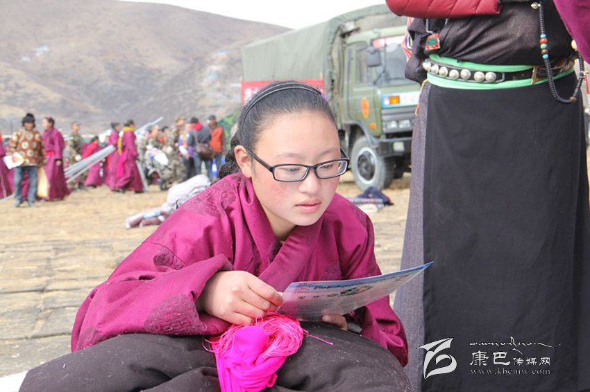 安置點小姑娘認(rèn)真翻看藏漢雙語健康宣傳資料。