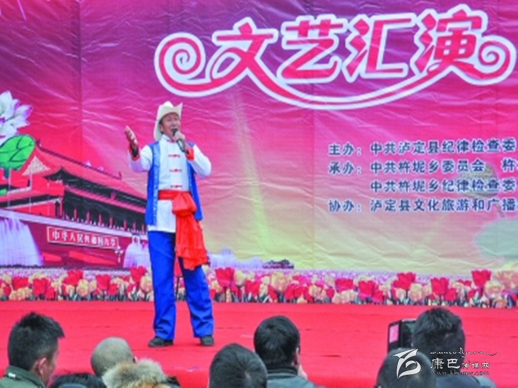 本網(wǎng)訊(姜濤 文/圖)12月22日,瀘定縣在杵坭鄉(xiāng)舉辦黨風(fēng)廉政建設(shè)宣傳教育文藝匯演,全縣各鄉(xiāng)鎮(zhèn)黨委主要負(fù)責(zé)人、杵坭鄉(xiāng)機(jī)關(guān)干部職工、各村財(cái)政供養(yǎng)人員、中心校學(xué)生、群眾400多人觀看了演出。 演出形式豐富多彩,表演者用曼妙的歌聲歌頌廉政建設(shè)給人民群眾帶來(lái)的實(shí)惠,唱出了杵坭鄉(xiāng)增強(qiáng)廉潔自律意識(shí)的火熱情懷;用舞蹈來(lái)展現(xiàn)廉政建設(shè)開(kāi)出的和諧之花,營(yíng)造出一種清正廉潔、求真務(wù)實(shí)的良好氛圍。每一個(gè)節(jié)目都緊緊圍繞著清正廉潔、秉公守法這一主題,演出精彩紛呈、高潮迭起,精彩的表演引來(lái)觀眾的連連喝彩和陣陣掌聲。杵坭鄉(xiāng)山歌王吳全清用山歌《黨員干部走基層》生動(dòng)反映出中央八項(xiàng)規(guī)定出臺(tái)以來(lái)鄉(xiāng)鎮(zhèn)干部在改進(jìn)“四風(fēng)”方面取得的喜人變化,讓群眾真切地感受到“廉”就在身邊,弘揚(yáng)廉政文化建設(shè)所取得的輝煌成就。