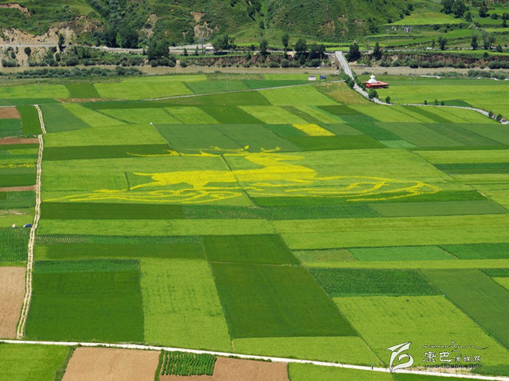 據(jù)了解,為增加游客旅游觀光的看點(diǎn)和蝦拉沱新村建設(shè)的亮點(diǎn),提高蝦拉沱新村乃至爐霍縣的知名度。今年該縣投資29.25萬(wàn)元在宜木鄉(xiāng)章達(dá)村集中5戶共計(jì)16畝土地作為該縣縣名種植基地,在蝦拉沱村集中13戶共計(jì)72畝土地作為吉祥金鹿圖案種植基地。在州縣技術(shù)人員的共同努力下,經(jīng)過(guò)土地選定劃分→土地整理→土壤施肥→青稞播種→放線編圖→開溝覆膜步步細(xì)作,兩個(gè)圖案全部覆膜成型,之后又完成整個(gè)圖案油菜播種作業(yè)。由此建成蝦拉沱村以1500畝青稞連片為背景,用油菜繪制金鹿圖案的創(chuàng)意觀光農(nóng)業(yè)示范區(qū);章達(dá)村以1000畝青稞連片為背景,用油菜繪制“爐霍”兩字圖案的創(chuàng)意觀光農(nóng)業(yè)示范區(qū)。