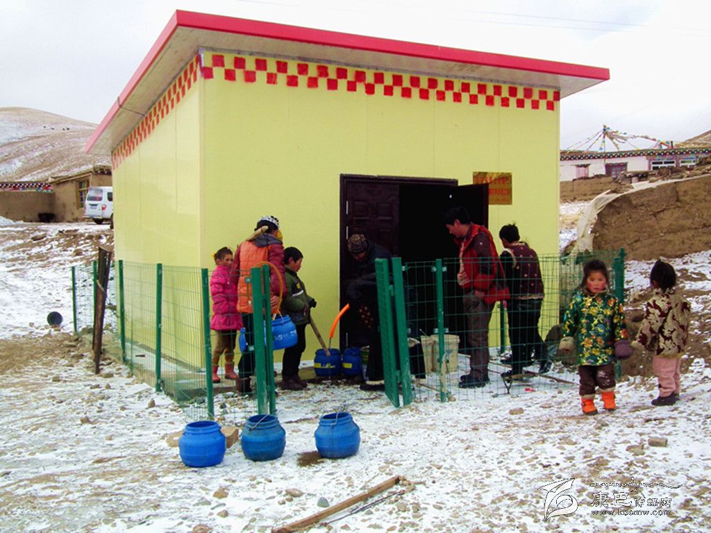 經(jīng)過(guò)反復(fù)設(shè)計(jì)檢驗(yàn),地質(zhì)工程勘察院最終采用了“泵房、水池雙重保溫、定時(shí)供水及時(shí)排水”的方案來(lái)解決以上問(wèn)題。在儲(chǔ)水箱和里外出水管上都裹上厚厚的保溫隔熱材料,非凍期24小時(shí)按需供水,冰凍期因需要及時(shí)排水來(lái)確保水箱、水管無(wú)殘留水被冰凍而采取早中晚定時(shí)供水。通過(guò)一個(gè)水文年尤其是一個(gè)寒冬的考驗(yàn),50口示范井成功地為最低零下45度的石渠縣包蟲(chóng)病區(qū)的居民提供了清潔水源,解決了高原寒冬供水的難題。