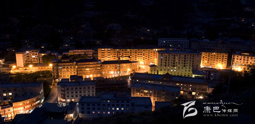 夜色中的德格縣城。