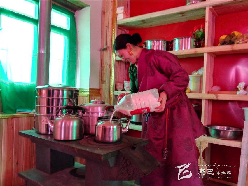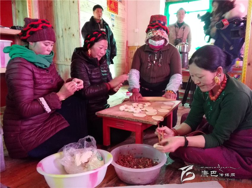 走進(jìn)江巴達(dá)吉的家里,一股熱浪撲面而來(lái),小鋼爐上燒著熱水,幾個(gè)女人正在備料準(zhǔn)備包酥油包子和牛肉餃子。藏桌上擺滿了糖果、牛肉,豐盛的食物琳瑯滿目。江巴達(dá)吉愜意地喝著奶子茶,知足和幸福寫(xiě)在臉上。