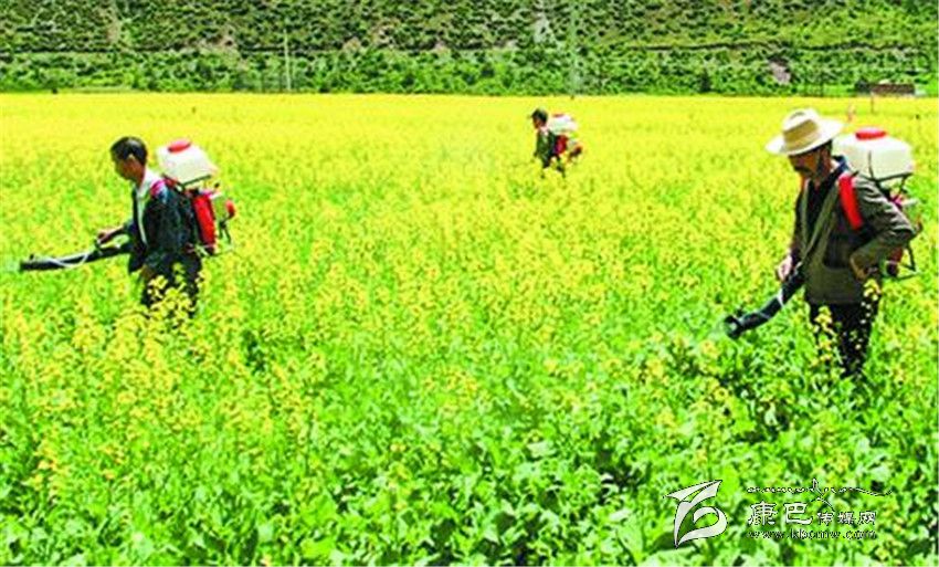 村民在精心管護(hù)油菜。