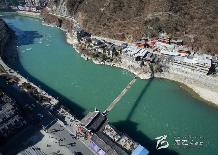 長征之路發(fā)生了翻天覆地的變化,昔日的艱難險阻正逐漸變成康莊通道。圖為從空中俯看今日瀘定橋。(新華社發(fā))