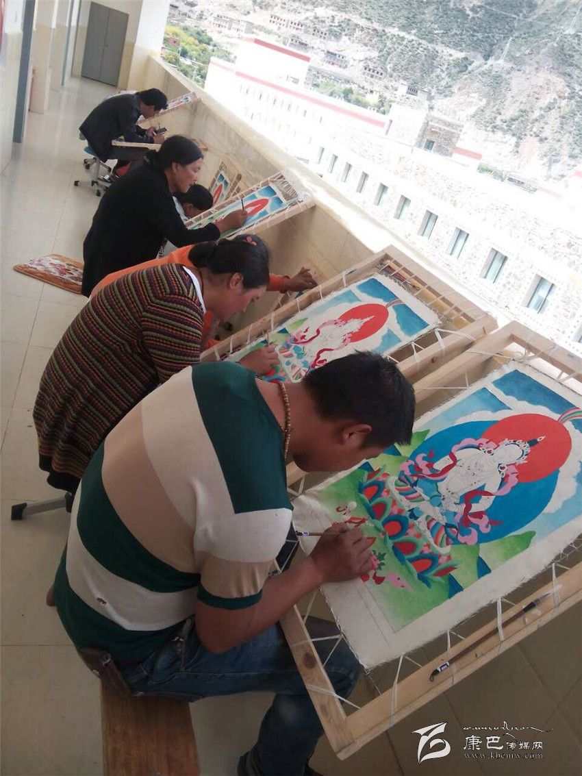 學員們正在專心致志地學習唐卡繪畫技法。