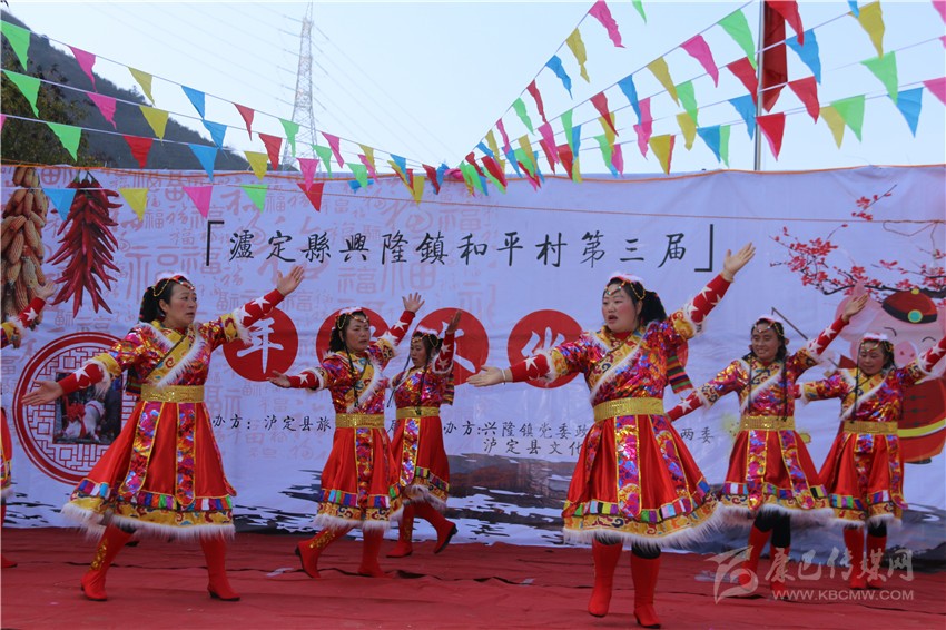 “這里有舉世聞名的牛背山,還有那風景秀麗的娘娘山,蜿蜒曲折的大渡河,遠方的朋友啊!歡迎你到和平來!”村民自告奮勇上臺演唱的歌曲,引得觀眾陣陣掌聲?!拔矣昧恕稓g迎你到康巴來》的調(diào),把歌詞改了,還是要體現(xiàn)我們的地方特色。唱得怎么樣不說,這是我們老百姓的舞臺?!?/p>
