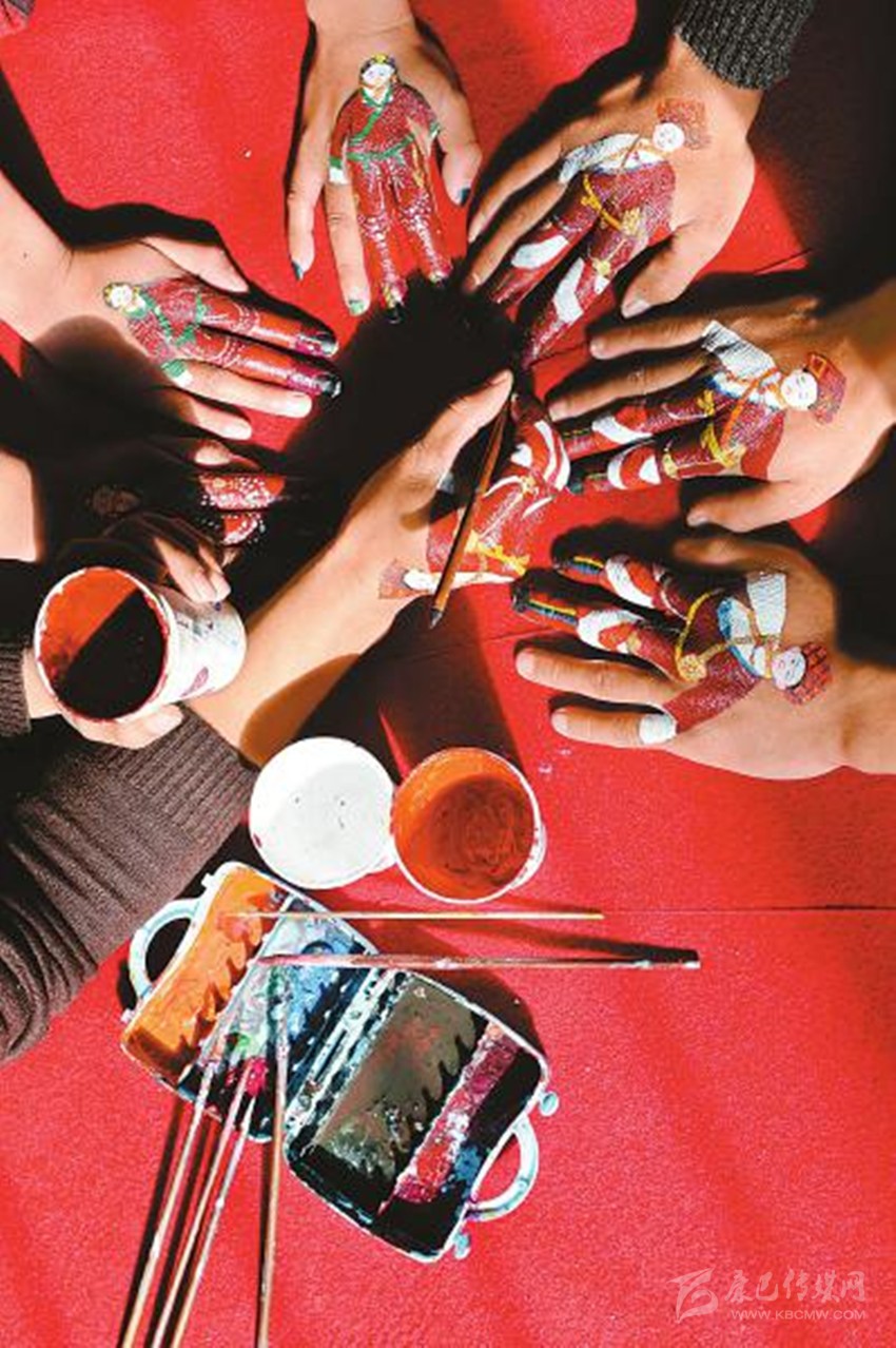 演員們互相在手指上描畫(huà)富有民族特色的人物形象。