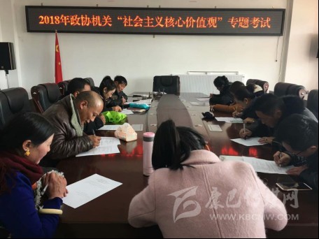 為書面測(cè)試廣大干部職工“社會(huì)主義核心價(jià)值觀”的實(shí)踐意義,11月29日下午2:00,2018年石渠縣政協(xié)機(jī)關(guān)“社會(huì)主義核心價(jià)值觀”專題考試,在縣政協(xié)黨組成員、副主席楊國(guó)華的監(jiān)考下開始。其書面閉卷筆試為:?jiǎn)雾?xiàng)和多項(xiàng)選擇題及簡(jiǎn)答“三嚴(yán)三實(shí)”與“社會(huì)主義核心價(jià)值觀”內(nèi)容和論述題:一是結(jié)合藏區(qū)與自己的思想實(shí)際及政協(xié)工作特點(diǎn),有條理的闡述如何開展“社會(huì)主義核心價(jià)值觀”實(shí)踐活動(dòng);二是踐行“社會(huì)主義核心價(jià)值觀”的重大意義及措施、方法等。通過(guò)一小時(shí)左右的臨場(chǎng)測(cè)試,應(yīng)考的政協(xié)機(jī)關(guān)干部職工含臨時(shí)工、駕駛員、實(shí)習(xí)生等,人人均遞交了滿意的答卷。