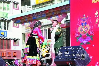 從大年初二開始,鄉(xiāng)鎮(zhèn)、社區(qū)奉獻(xiàn)的“康定之春”拉開了群眾文藝匯演的序幕,使情歌廣場(chǎng)成了康定城人氣最旺的地方。一場(chǎng)場(chǎng)文藝演出,吸引上千市民、游客駐足觀賞。