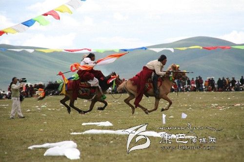 賽馬是廣大藏族群眾十分喜愛的一項(xiàng)體育運(yùn)動。隨著時(shí)代的發(fā)展,賽馬節(jié)的內(nèi)涵不斷拓展,已形成一種內(nèi)容豐富多彩的傳統(tǒng)文化。它不僅是農(nóng)牧民群眾縱情歌舞的聚會,交流農(nóng)畜產(chǎn)品的市場,而且是藏族群眾展示精神風(fēng)貌的舞臺。在所有民間傳承的藏族節(jié)日中,幾乎都少不了賽馬活動,并且此項(xiàng)活動有著悠久的歷史。圖為石渠牧民正在開展賽馬活動。 (李宏 攝影報(bào)道)