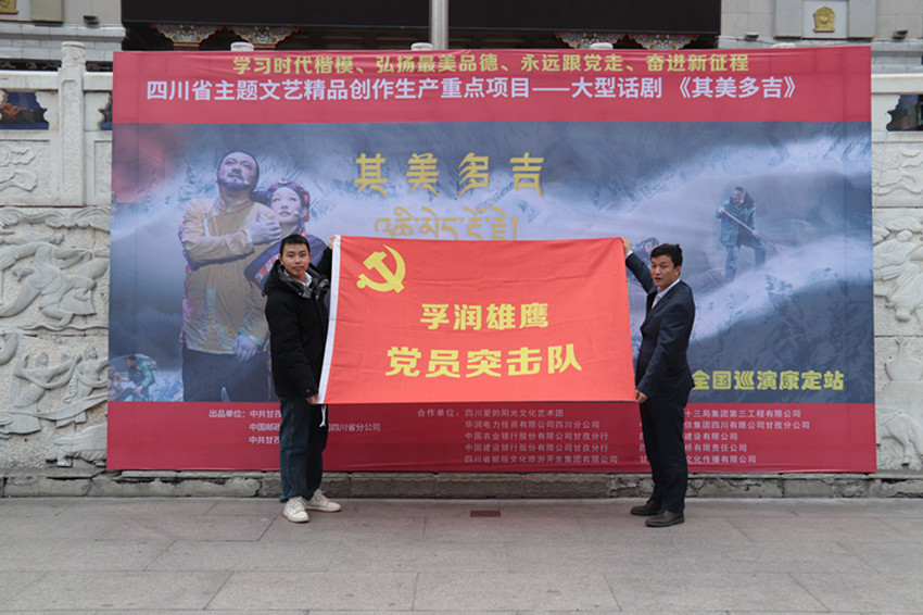 2023年3月21日,四川省主題文藝精品創(chuàng)作生產重點項目——大型情景話劇《其美多吉》在康定市開展巡演。該公司派遣“黨員先鋒隊”三名成員前往康定市學習,并給予一定的資金支持,號召黨員學習其美多吉這名全國優(yōu)秀共產黨員、全國勞動模范、全國道德模范、“時代楷?!钡木礃I(yè)精神、奉獻精神。