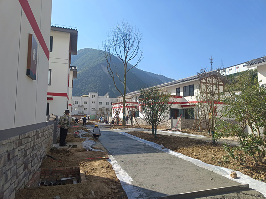 11月5日,記者走進(jìn)瀘定縣德威鎮(zhèn)奎武村“9·5”瀘定地震災(zāi)后重建集中安置點(diǎn),只見一幢幢繪有“如意結(jié)”和穿斗裝飾等瀘定傳統(tǒng)建筑元素以及“瀘定紅”“紅飄帶”等民族特色的安置房沿大渡河畔依次排開,一條條寬敞平整的水泥硬化道路將這些風(fēng)貌一致、戶型合理、結(jié)構(gòu)安全的安置房屋串聯(lián)起來(lái)。幾十名工人正在安置點(diǎn)內(nèi)忙碌,有的在鋪設(shè)路面、有的在栽種綠化樹、有的在搬運(yùn)廢渣……,拿到鑰匙的部分村民正在進(jìn)行室內(nèi)裝修,現(xiàn)場(chǎng)一派繁忙景象。