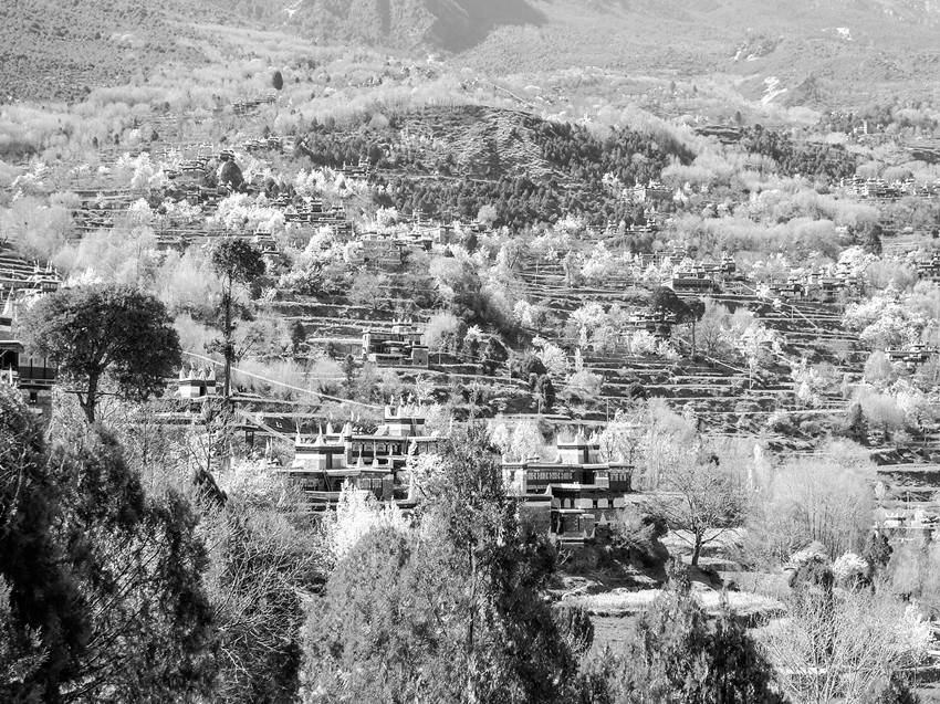 行駛在牦牛河谷,兩岸的山坡上,古樹參天,層林疊翠,仿佛打翻的調(diào)色盤,將一條溝谷渲染得猶如人間仙境,令人目不暇接美不勝收,因此獲得“天然盆景”的美譽(yù)。美麗的山水完美地詮釋了丹巴縣大力推進(jìn)生態(tài)建設(shè)所取得的顯著成效。