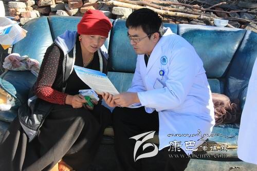 本網(wǎng)訊(李銘暇 孫學(xué)花文/圖)12月2日,海拔近3500米的康定縣新都橋鎮(zhèn),清晨的風(fēng)帶著寒意,然而,在這初冬的清晨,卻有幾個(gè)人正冒著寒風(fēng)奔走在救災(zāi)帳篷之間。他們身著白大褂,手里拿著藏漢雙語(yǔ)宣傳資料、藥品和血壓計(jì)等醫(yī)療器械,他們就是“雅安市抗震救災(zāi)醫(yī)療救援小組”的成員。