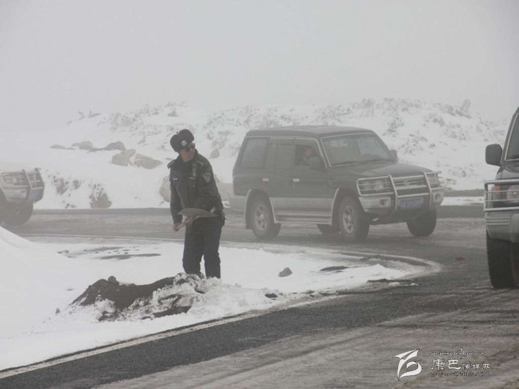 高高的折多山,氣候惡劣,有時竟七月飛雪。在風雪中,處處可以看到王洛讓偉岸的身軀,因為有了他們的堅守,換來游客對甘孜交警的由衷贊嘆。