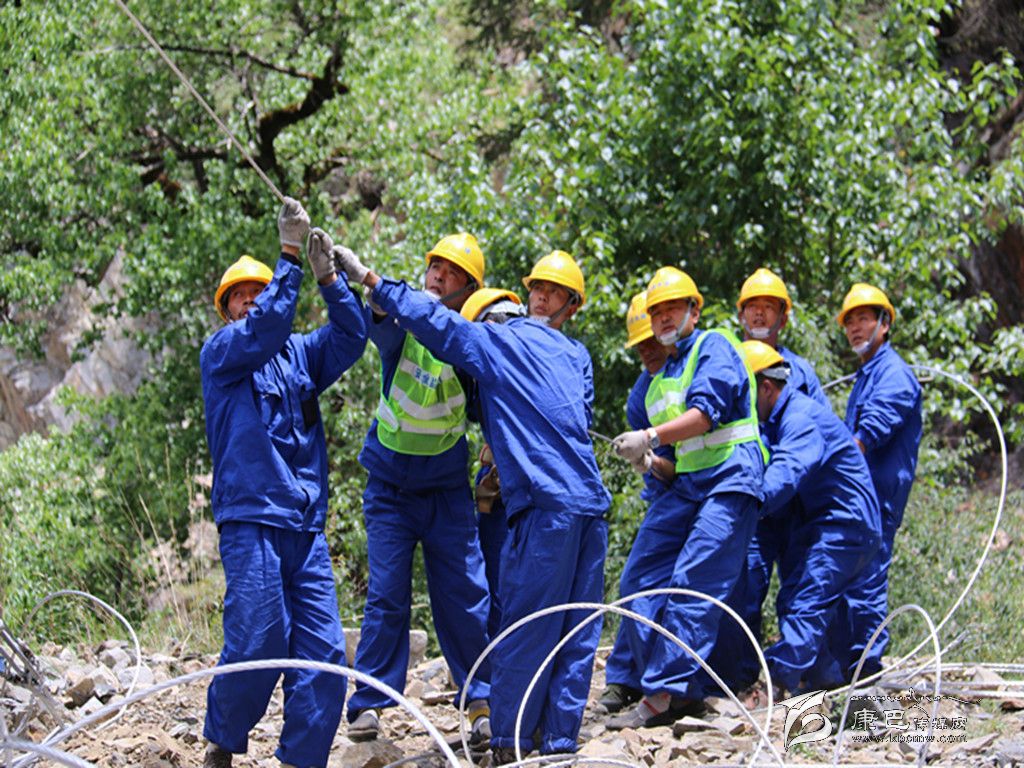 “辛苦”二字同樣印在工程管理者的工作中。手握對講機、身穿工裝的工程項目負責人龍森,此刻正頂著烈日在工地對一位工人叮囑施工事項。龍森是甘孜電力建設(shè)有限公司的工程技術(shù)人員,他對工程管理非常嚴格,如果工程進度稍慢點,他就會焦急萬分??擅棵靠匆姽と藗冺斨胰?、冒著風雨加班加點趕工程進度時,龍森的心里也特別不是滋味。對這項工程的不易龍森深有體會。架桿初期,有些路段山坡土質(zhì)松軟,一遇到下雨就容易滑坡塌方,為了不影響工程進度,龍森和工友們常常要一邊做“修路工”的工作一邊做“架桿工”的工作。龍森說:“最苦的是,這里有些路段車輛根本無法進入,一根電桿重1.2噸,要靠十多名工人用繩索和木頭抬進工地。德差鄉(xiāng)距離縣上有170多公里,單程就要4小時,工程緊的時候一周要往返縣上兩三趟。還記得有一次車胎在海拔近5000米的呷布科山上爆了,山上手機沒有信號,得不到救援,餓了我們就在山上吃點自帶的干糧,等了近半天才等到一位騎摩托車的老鄉(xiāng)路過,回到休息地的時候已經(jīng)是半夜兩點多了。”說到這里,龍森無奈地搖了搖頭。世上無難事,只怕有心人。龍森說,這段路線的電桿已經(jīng)全部立起來了,現(xiàn)在只剩下架線的工作。一定要搶在月底之前為這兩個村通上電。