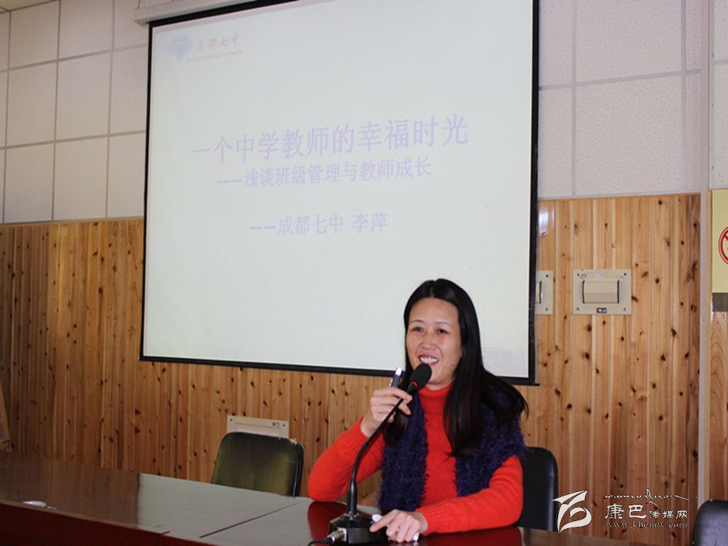 活動(dòng)中,成都七中網(wǎng)校教師分別與康定中學(xué)網(wǎng)課班(云班)教師、學(xué)生開展了交流、觀摩教學(xué)等活動(dòng)。成都七中優(yōu)秀政治教師、班主任李萍還為全校教師作了一堂題為《一個(gè)中學(xué)教師的幸福時(shí)光──淺談班級(jí)管理與教師成長(zhǎng)》的專題講座。講座中,李萍老師以米歇爾訪問(wèn)七中以及旅美感受為楔子,結(jié)合自己的教育經(jīng)驗(yàn)、親身經(jīng)歷、人生閱歷、工作所得,對(duì)班級(jí)管理及教師成長(zhǎng)進(jìn)行了深入淺出的詮釋,讓全體聽課教師普遍感覺(jué)受益非淺。