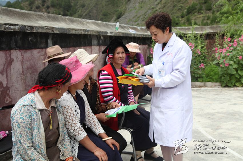 雅江縣醫(yī)務(wù)工作者向群眾發(fā)放包蟲(chóng)病防治宣傳資料。