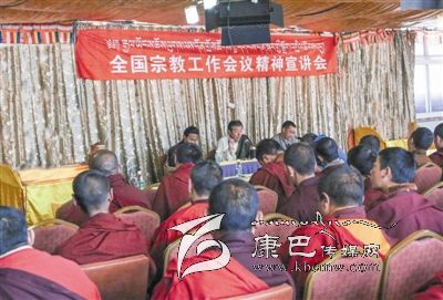 本網(wǎng)訊 (記者 田杰 陳楊 馬建華 文/圖)為廣泛深入宣傳好全國(guó)宗教工作會(huì)議精神,讓全州各族干部群眾和廣大僧尼準(zhǔn)確把握黨的宗教工作基本方針,實(shí)現(xiàn)習(xí)近平總書記“導(dǎo)”之有方、“導(dǎo)”之有力、“導(dǎo)”之有效的要求,全面貫徹黨的宗教信仰自由政策,依法管理宗教事務(wù),堅(jiān)持獨(dú)立自主自辦原則,積極引導(dǎo)宗教與社會(huì)主義社會(huì)相適應(yīng)。5月26日,州委“藏漢雙語(yǔ)宣講團(tuán)”深入色達(dá)縣喇榮寺五明佛學(xué)院集中宣講全國(guó)宗教工作會(huì)議精神。