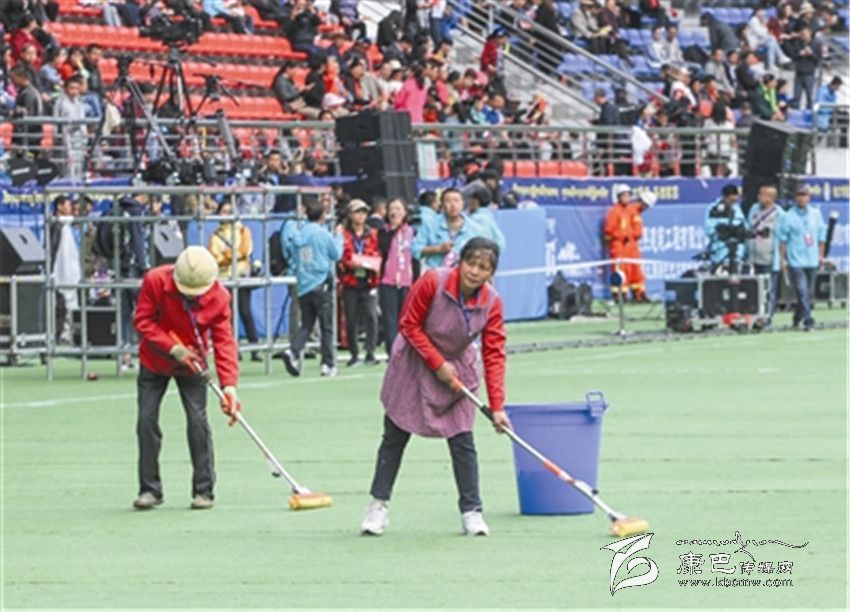 工人們清理演出場(chǎng)地。 張兵 攝