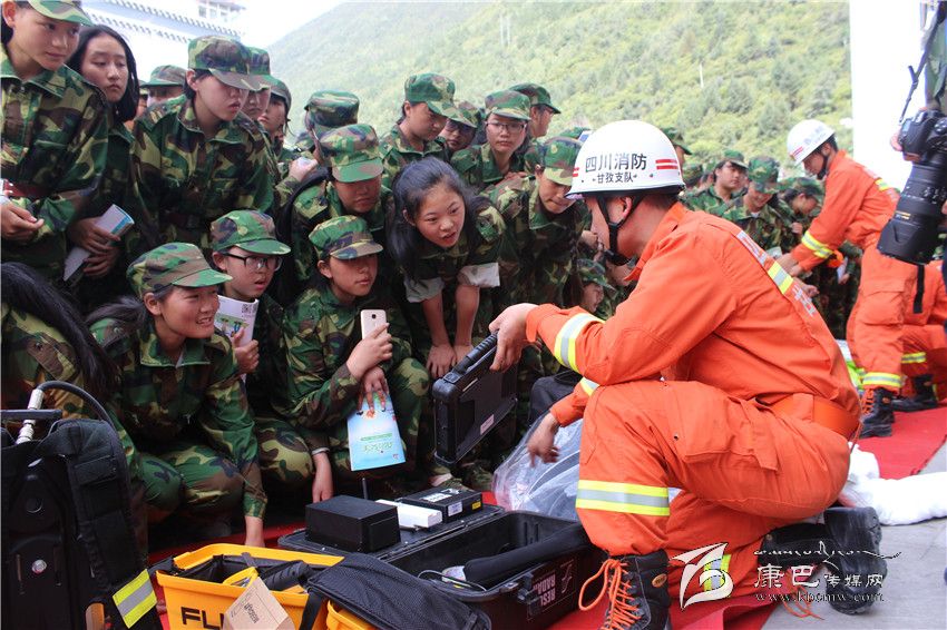 本網(wǎng)訊(龍培民)8月26日,州消防支隊(duì)首次在康定中學(xué)舉辦“消防進(jìn)軍訓(xùn)”實(shí)踐操課演練活動(dòng)。通過支隊(duì)官兵的講解和演示,康定中學(xué)正在參加軍訓(xùn)的1000余名高一新生對消防安全工作有了進(jìn)一步的了解和認(rèn)識,并通過試穿消防戰(zhàn)斗服,現(xiàn)場體驗(yàn)多項(xiàng)消防訓(xùn)練內(nèi)容,掌握了一定的消防安全基本知識和技能,增強(qiáng)了消防安全意識。 圖為消防官兵正在向?qū)W生講解消防器材的使用方法。