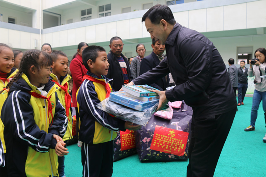 當(dāng)天上午,“粵企代表為藏區(qū)困難群眾、貧困學(xué)生和留守兒童捐贈物資發(fā)放儀式”在康定市實驗小學(xué)舉行,廣東企業(yè)代表向該校20名留守兒童和困難學(xué)生發(fā)放了包括玩具、書包、圖書在內(nèi)的節(jié)日禮物,向康定市的30戶家庭困難的群眾發(fā)放了棉被、洗漱包、保溫杯等慰問品。